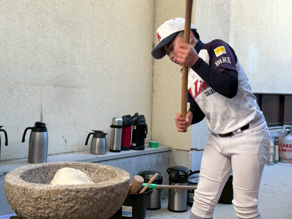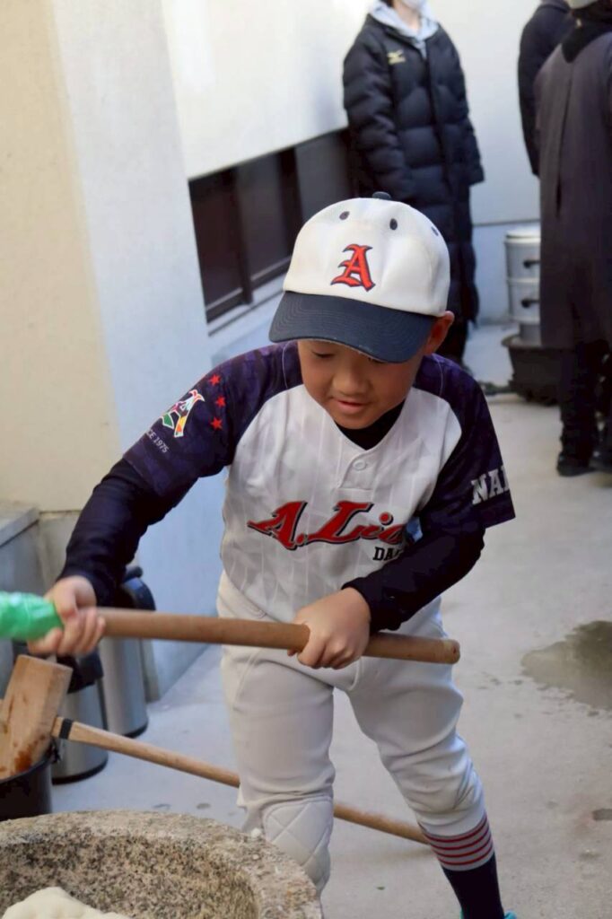 ・必勝祈願の八幡神社参拝、餅つき行事を行いました(1/11)